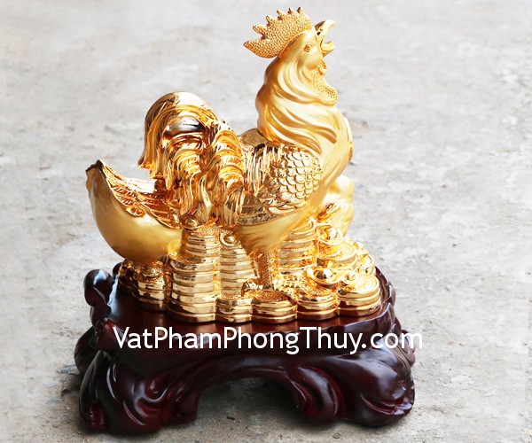 + Chất liệu và hoàn thiện: Tượng gia đình gà vàng trên đống tiền, hàng bột đá mạ vàng non cao cấp (tại Việt Nam)