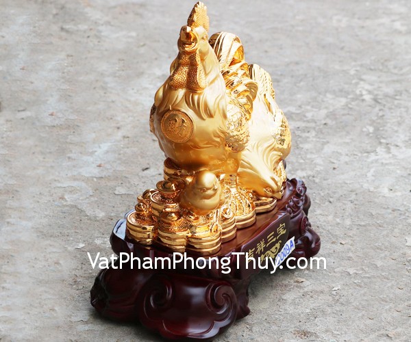 + Ý nghĩa: Cát Tường Tam Bảo. Tượng gà phong thủy có tác dụng thu hút tài lộc cho gia chủ, gà phong thủy báo hiệu nhiều may mắn, nhiều điều tốt đẹp cho ngày mới, và giúp người sử dụng luôn giữ được thế vững vàng trong công việc và cuộc sống, gia đình gà tượng trưng cho sự sum vầy, sung túc.
