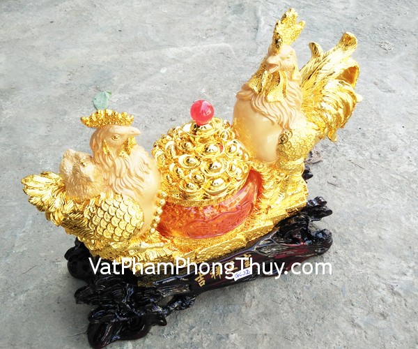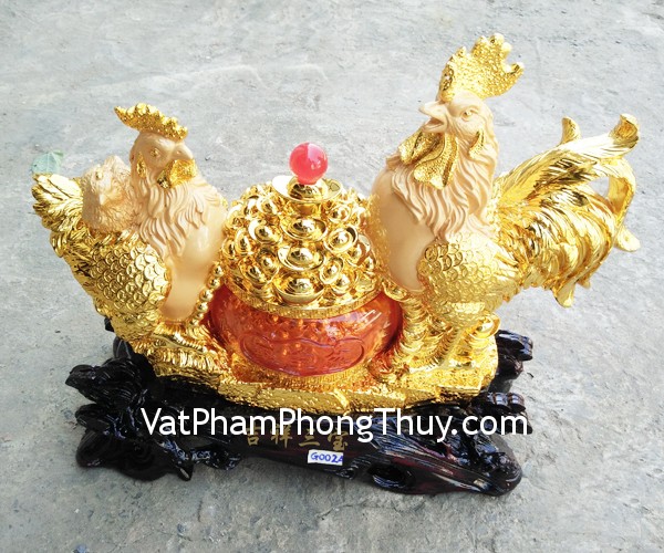 + Ý nghĩa: Cát Tường Tam Bảo. Tượng gà phong thủy có tác dụng thu hút tài lộc cho gia chủ, gà phong thủy báo hiệu nhiều may mắn, nhiều điều tốt đẹp cho ngày mới, và giúp người sử dụng luôn giữ được thế vững vàng trong công việc và cuộc sống, gia đình gà tượng trưng cho sự sum vầy, sung túc.