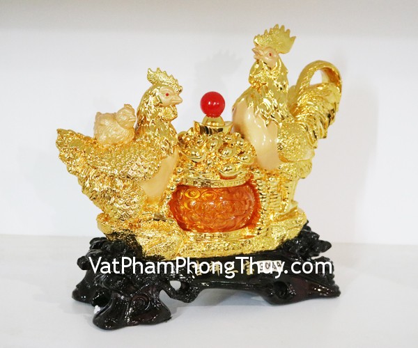 + Ý nghĩa: Cát Tường Tam Bảo. Tượng gà phong thủy có tác dụng thu hút tài lộc cho gia chủ, gà phong thủy báo hiệu nhiều may mắn, nhiều điều tốt đẹp cho ngày mới, và giúp người sử dụng luôn giữ được thế vững vàng trong công việc và cuộc sống, gia đình gà tượng trưng cho sự sum vầy, sung túc.