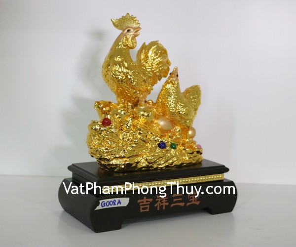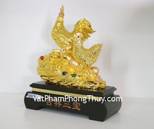 + Ý nghĩa: Cát Tường Tam Bảo. Tượng gà phong thủy có tác dụng thu hút tài lộc cho gia chủ, gà phong thủy báo hiệu nhiều may mắn, nhiều điều tốt đẹp cho ngày mới, và giúp người sử dụng luôn giữ được thế vững vàng trong công việc và cuộc sống, gia đình gà tượng trưng cho sự sum vầy, sung túc.