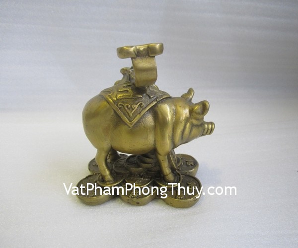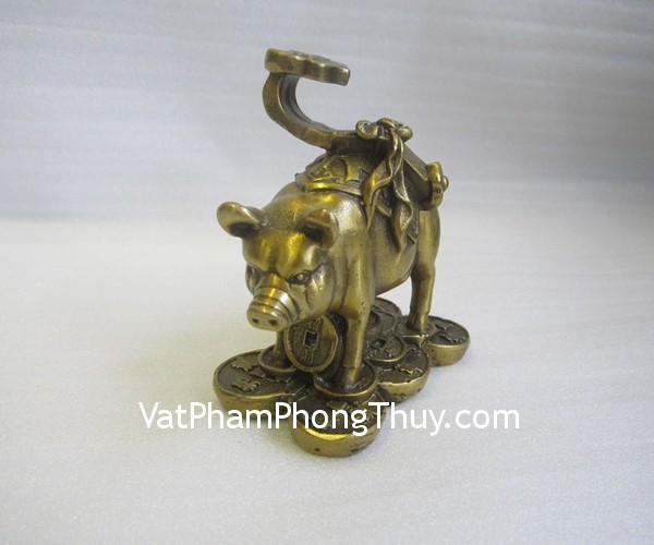 + Chất liệu và hoàn thiện: Heo đồng cõng gậy như ý, bằng đồng nguyên chất (tại Việt Nam)