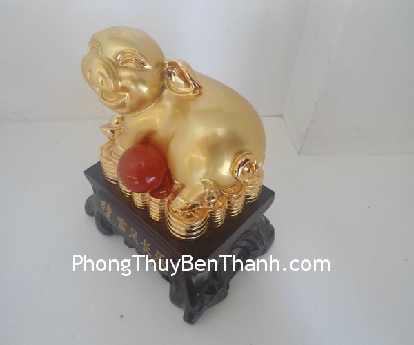 + Chất liệu và hoàn thiện: Tượng heo trên đế gỗ bột đá mạ vàng non (tại Việt Nam)