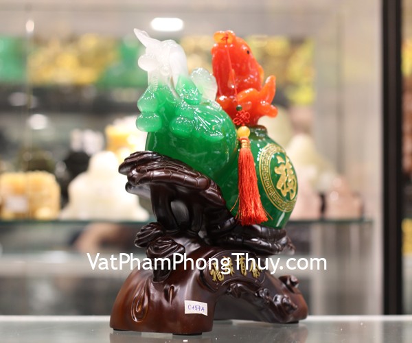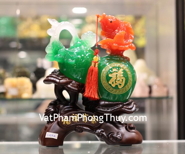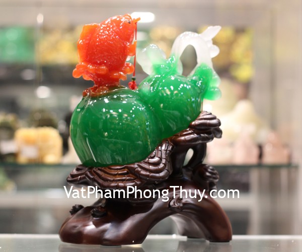 + Chất liệu và hoàn thiện: Hồ lô xanh có cá chép đỏ, hàng bột đá màu cao cấp (tại Việt Nam).