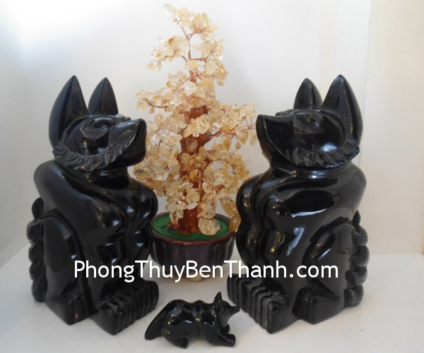 + Chất liệu và hoàn thiện: Hồ ly đá hắc ngà (thạch anh đen, onyx), Nam Mỹ.