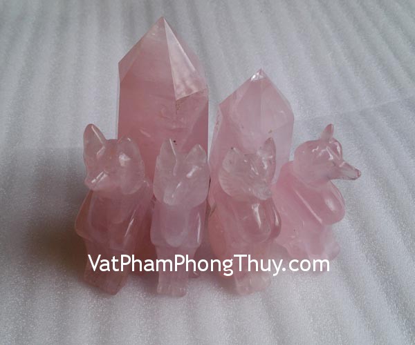+ Chất liệu và hoàn thiện: Hồ ly đá thạch anh hồng (tại Việt Nam).