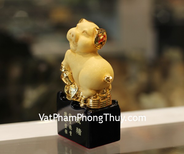 + Chất liệu và hoàn thiện: Tượng heo (Hợi) trên đế gỗ, bộ 12 con giáp, bằng bột đá sa kim cao cấp (tại Việt Nam).