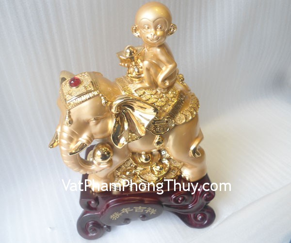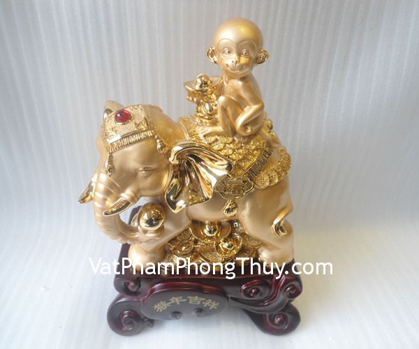 + Ý nghĩa : Khỉ cưỡi voi tài lộc – hầu niên cát tường – biểu tượng cho sự kiên cường, nhanh nhạy và thông minh. Linh vật may mắn, bảo trợ sức khỏe, tượng trưng cho mọi việc đều tốt đẹp, công việc vững chắc, thăng tiến.