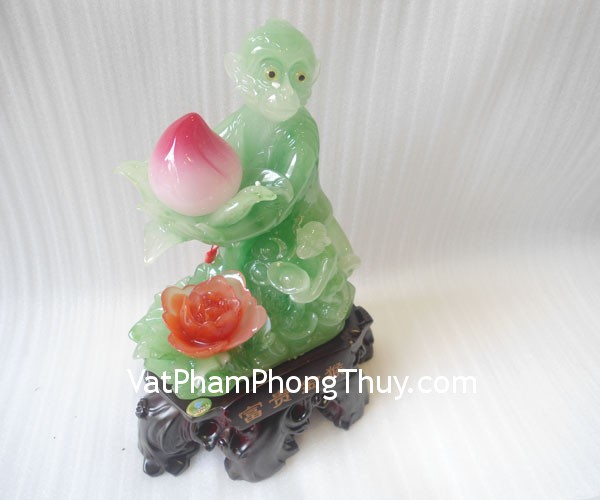 + Ý nghĩa : Khỉ mẫu tử dâng đào, nguyên bảo trên mẫu đơn (xanh) – phú quý kim hầu, biểu tượng cho sự kiên cường, nhanh nhạy và thông minh. Linh vật may mắn, bảo trợ sức khỏe, tượng trưng cho mọi việc đều tốt đẹp, công việc vững chắc, thăng tiến.
