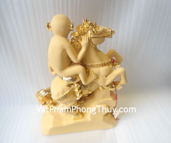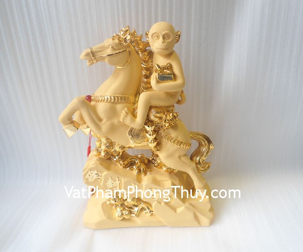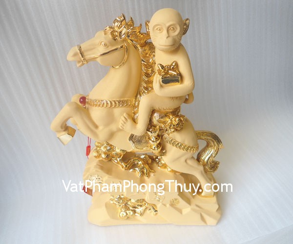 + Chất liệu và hoàn thiện : Khỉ (tuổi Thân) trên lưng ngựa, ôm ấn vàng, mã thượng phong hầu bột đá (tại Việt Nam).