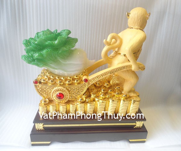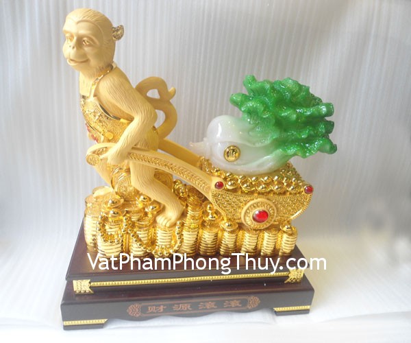 + Ý nghĩa : Khỉ phát tài kéo cải – tài nguyên cuồn cuộn – biểu tượng cho sự kiên cường, nhanh nhạy và thông minh. Linh vật may mắn, bảo trợ sức khỏe, tượng trưng cho mọi việc đều tốt đẹp, công việc vững chắc, thăng tiến.