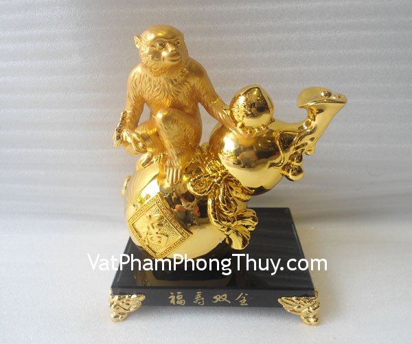 + Ý nghĩa : Chúa khỉ cầm đào bên hồ lô đế thủy tinh – phước thọ song toàn, biểu tượng cho sự kiên cường, nhanh nhạy và thông minh. Linh vật may mắn, bảo trợ sức khỏe, tượng trưng cho mọi việc đều tốt đẹp, công việc vững chắc, thăng tiến.