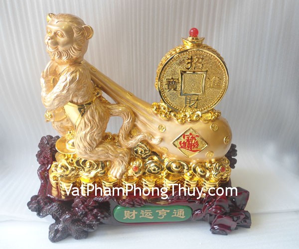 + Ý nghĩa : Khỉ phát tài kéo túi tiền – tài vận hanh thông – biểu tượng cho sự kiên cường, nhanh nhạy và thông minh. Linh vật may mắn, bảo trợ sức khỏe, tượng trưng cho mọi việc đều tốt đẹp, công việc vững chắc, thăng tiến.