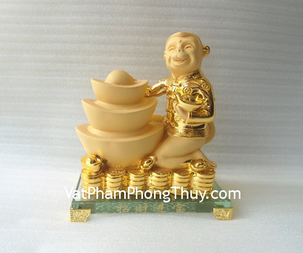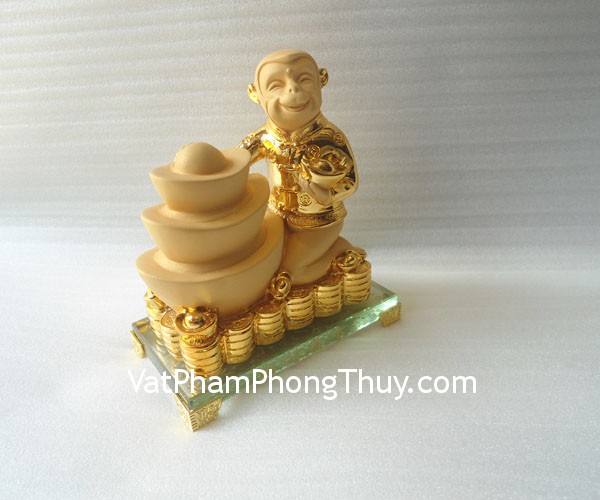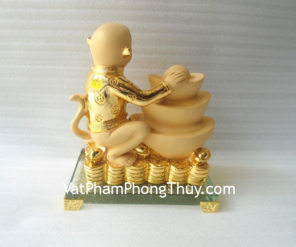 + Chất liệu và hoàn thiện : Tượng khỉ thần tài ôm tháp nguyên bảo trên đế thủy tinh, bột đá (tại Việt Nam).
