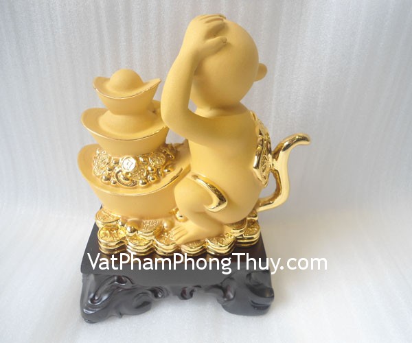 + Ý nghĩa : Khỉ tài lộc ôm tháp nguyên bảo đế gỗ – chiêu tài tấn bảo – biểu tượng cho sự kiên cường, nhanh nhạy và thông minh. Linh vật may mắn, bảo trợ sức khỏe, tượng trưng cho mọi việc đều tốt đẹp, công việc vững chắc, thăng tiến.