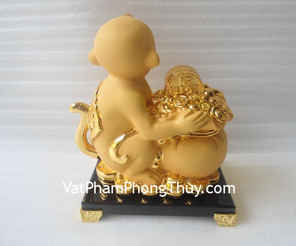 + Chất liệu và hoàn thiện : Tượng khỉ vàng ôm túi vàng bột đá (tại Việt Nam).