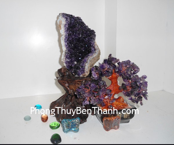 + Chất liệu và hoàn thiện: Thạch anh tím Uruguay, đế cây đố quyên (tại Việt Nam).