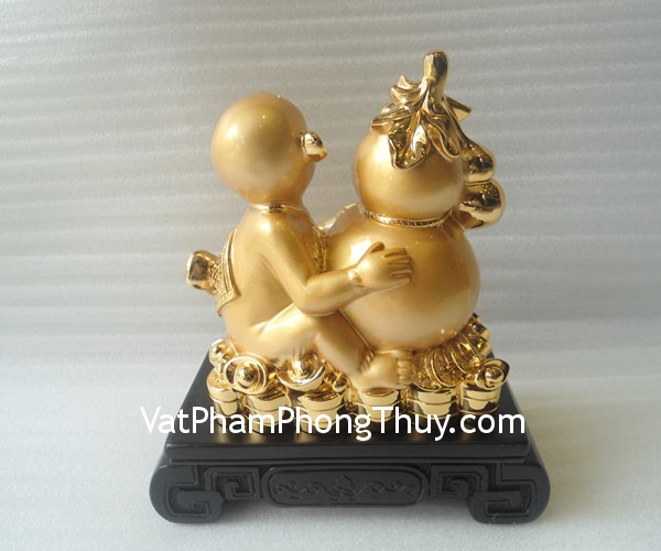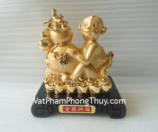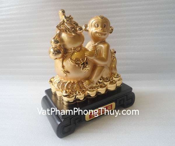 + Ý nghĩa : Khỉ tài lộc ôm hồ lô đế gỗ – kim hầu nạp phước – biểu tượng cho sự kiên cường, nhanh nhạy và thông minh. Linh vật may mắn, bảo trợ sức khỏe, tượng trưng cho mọi việc đều tốt đẹp, công việc vững chắc, thăng tiến.