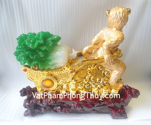 + Ý nghĩa : Khỉ tài lộc kéo bắp cải – kim hầu tụ tài – biểu tượng cho sự kiên cường, nhanh nhạy và thông minh. Linh vật may mắn, bảo trợ sức khỏe, tượng trưng cho mọi việc đều tốt đẹp, công việc vững chắc, thăng tiến.