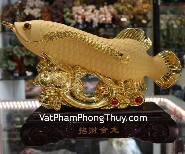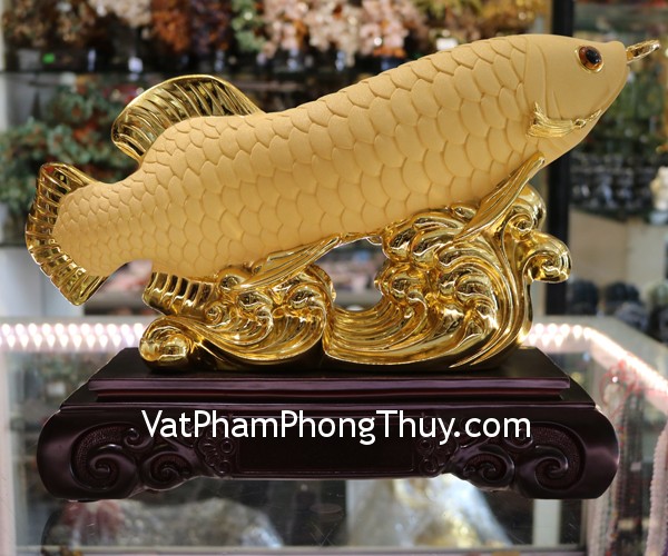 + Chất liệu và hoàn thiện: Tượng cá kim long vàng sa kim, hàng cao cấp (tại Việt Nam).