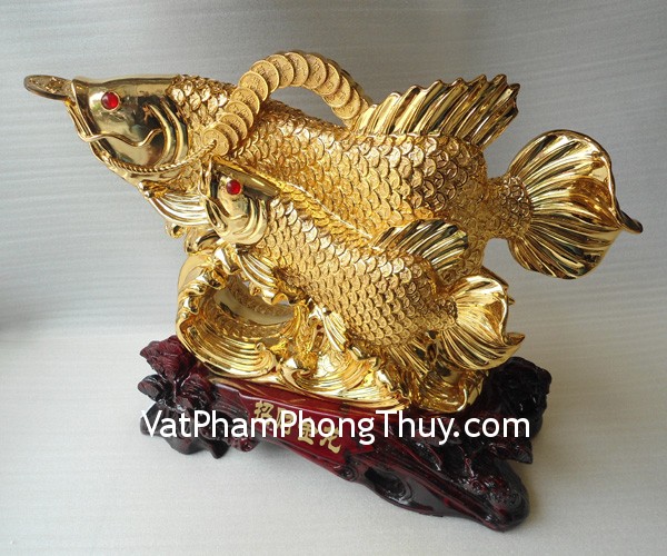 + Chất liệu và hoàn thiện: Cặp cá kim long bột đá mạ vàng non (tại Việt Nam).