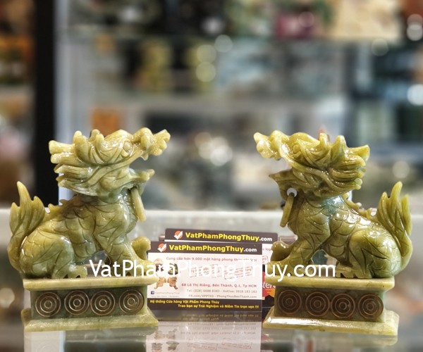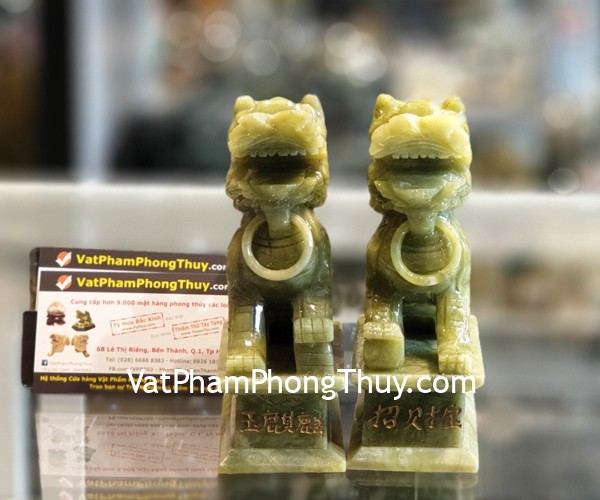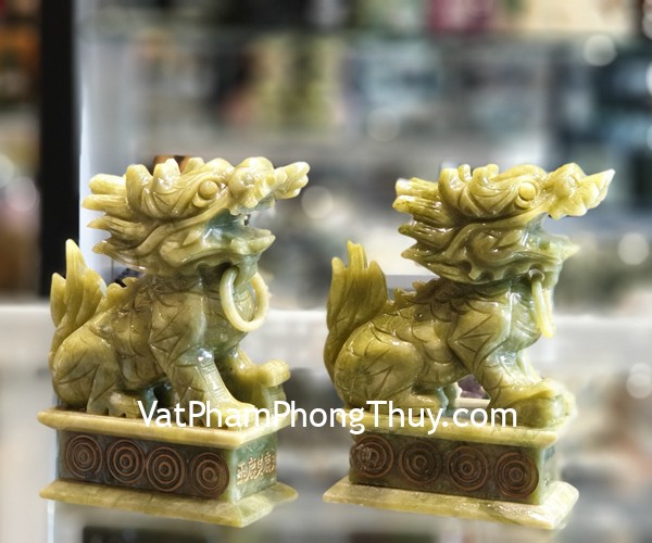 + Chất liệu và hoàn thiện: Kỳ lân đá lam ngọc ngồi có khoen lớn (tại Việt Nam)