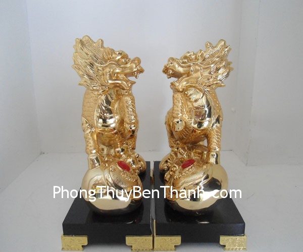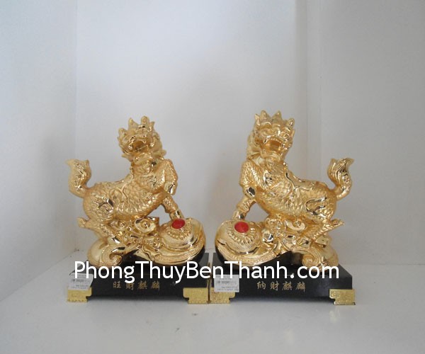 + Chất liệu và hoàn thiện: Cặp kỳ lân bột đá mạ vàng non (tại Việt Nam).