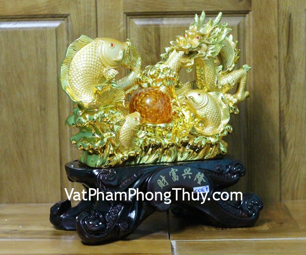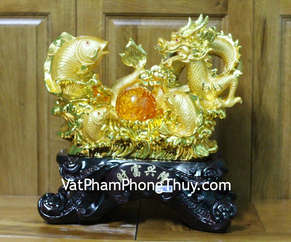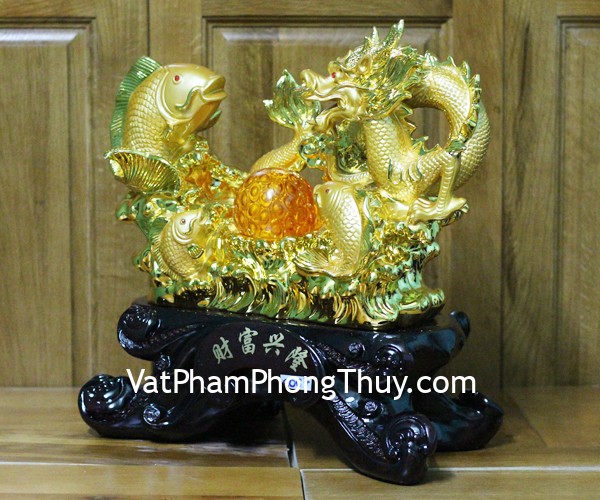 + Chất liệu và hoàn thiện: Tượng long ngư, rồng vàng bên bầy cá vàng, có đế gỗ, bột đá mạ vàng cao cấp (tại Việt Nam)