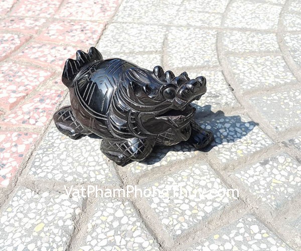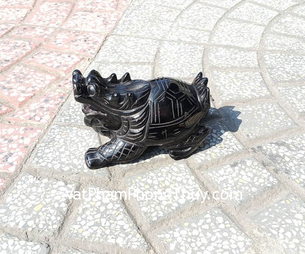 + Chất liệu và hoàn thiện: Rùa đầu rồng (long quy) đá hắc ngà (thạch anh đen) (tại Việt Nam).