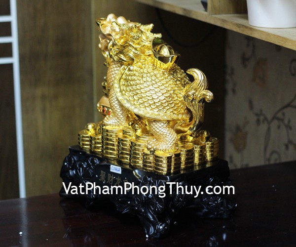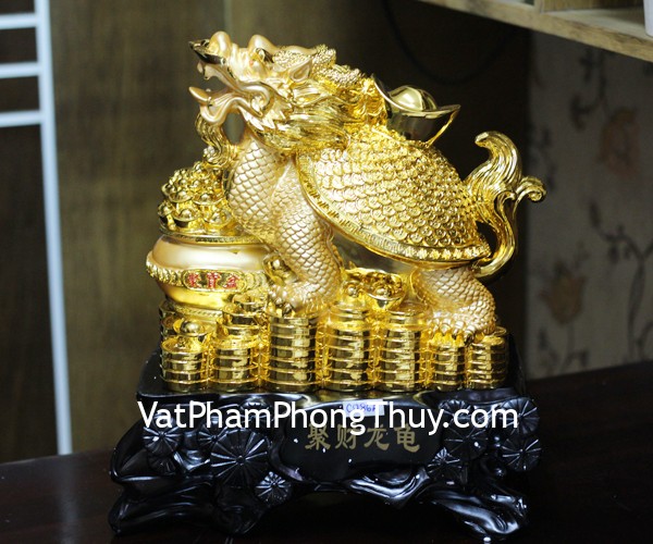 + Chất liệu và hoàn thiện: Long quy (rùa đầu rồng) vàng, trên đế gỗ, bột đá mạ vàng non cao cấp (tại Việt Nam).
