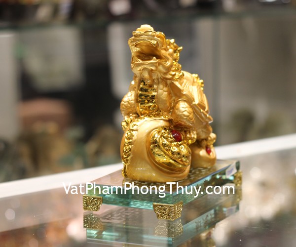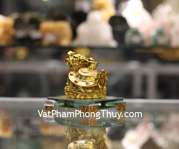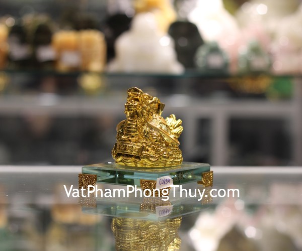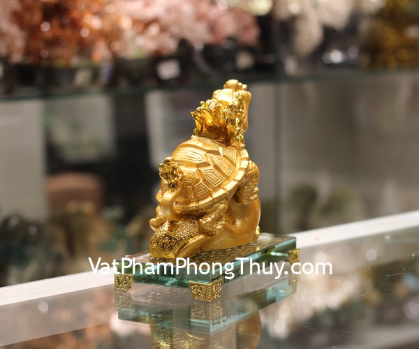 + Chất liệu và hoàn thiện: Long quy (rùa đầu rồng) trên đống tiền, trên đế gỗ, bột đá mạ vàng non cao cấp (tại Việt Nam).