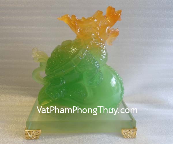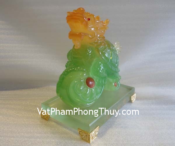 + Chất liệu và hoàn thiện: Long quy (rùa đầu rồng) trên gậy như ý, bột đá màu (tại Việt Nam).