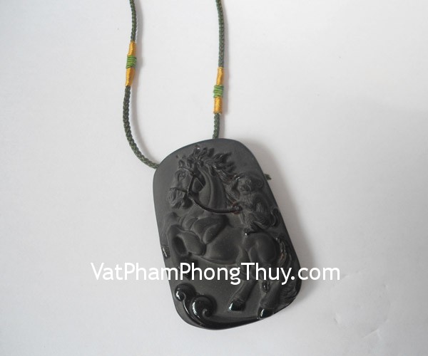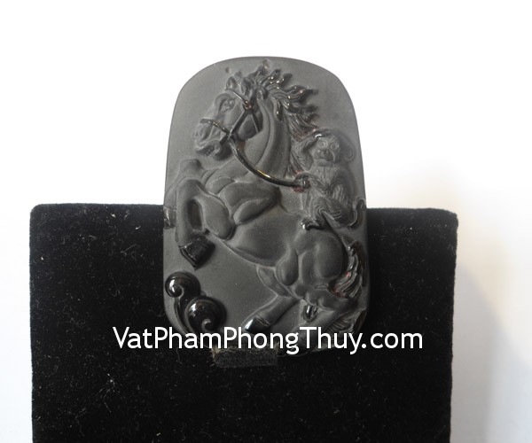 + Chất liệu và hoàn thiện: Mặt dây chuyền mã thượng phong hầu (khỉ trên lưng ngựa) đá hắc ngà (thạch anh đen, onyx).