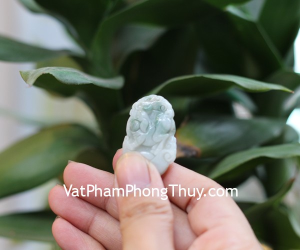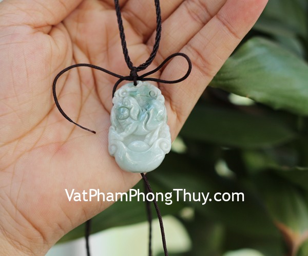 + Chất liệu và hoàn thiện: Mặt 12 con giáp tuổi Hợi (Heo) nhỏ, ngọc phỉ thúy vân trắng xanh (tại Việt Nam).