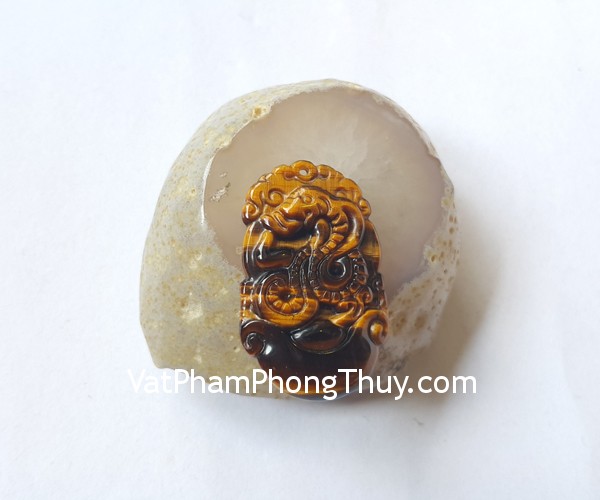 + Chất liệu và hoàn thiện: Mặt 12 con giáp tuổi Tỵ (Rắn) lớn, đá mắt mèo vân gỗ (tại Việt Nam).