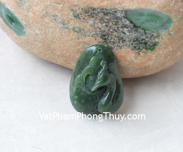 Mặt ngọc bích Canada khắc Hạc ôm củ đậu A+ S6394-3