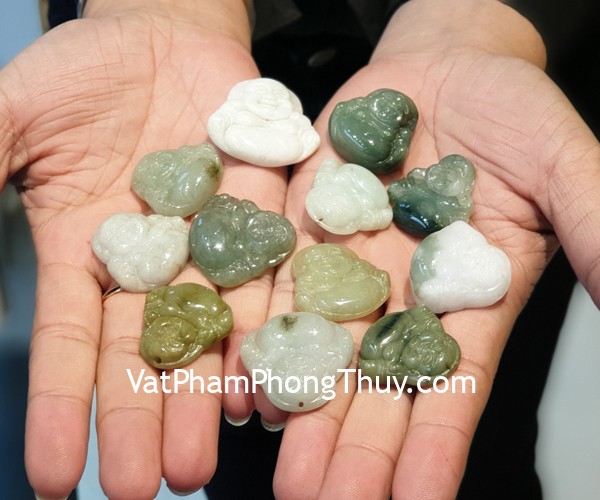 + Chất liệu và hoàn thiện: Mặt phật Di lạc ngọc Phỉ Thúy size vừa, nhiều vân ngọc khác nhau (Myanmar, Miến Điện).