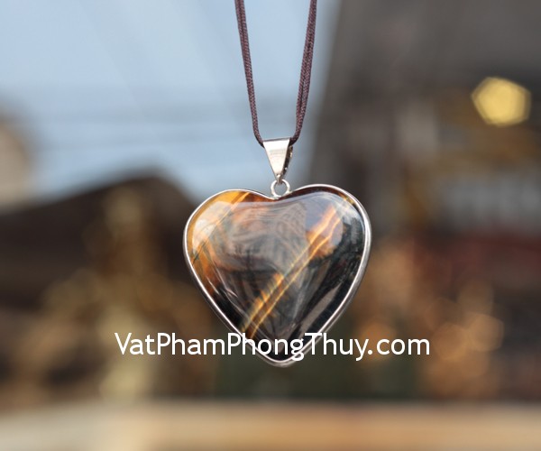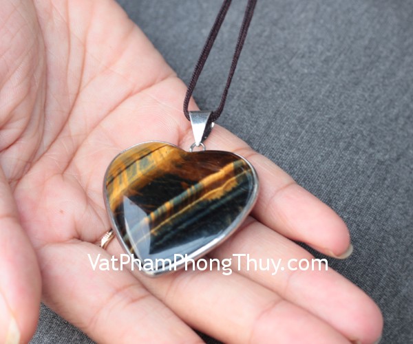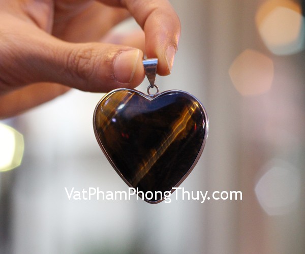 + Chất liệu và hoàn thiện: Mặt trái tim đá mắt mèo vân gỗ (tại Việt Nam)