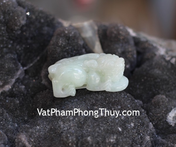 + Chất liệu và hoàn thiện: Tỳ hưu ngọc Phỉ Thúy A+ vân xanh, lưng điểm ngọc (Myanmar, Miến Điện).