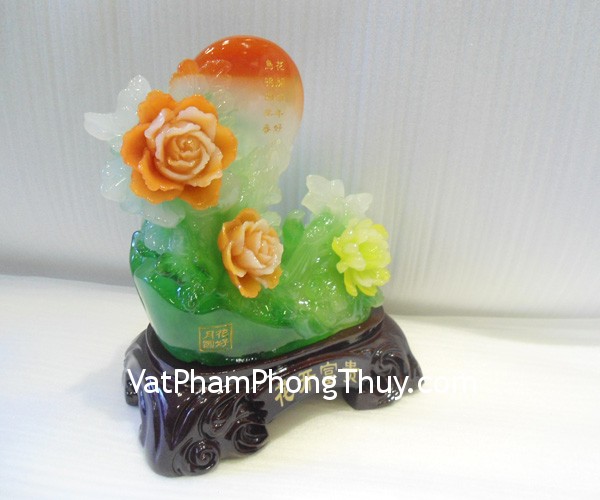 + Chất liệu và hoàn thiện: Hoa mẫu đơn bột đá màu (tại Việt Nam).