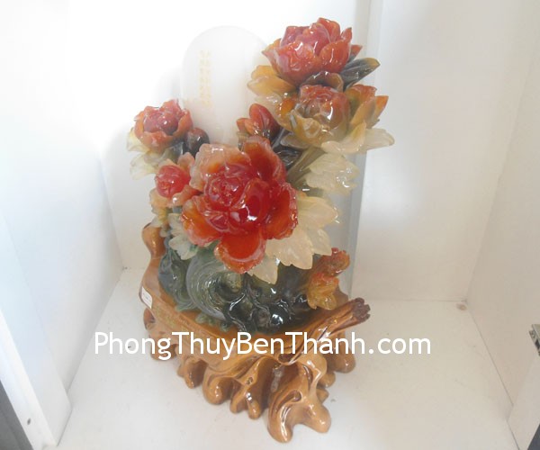 + Chất liệu và hoàn thiện: Hoa mẫu đơn bột đá mạ vàng non (tại Việt Nam).