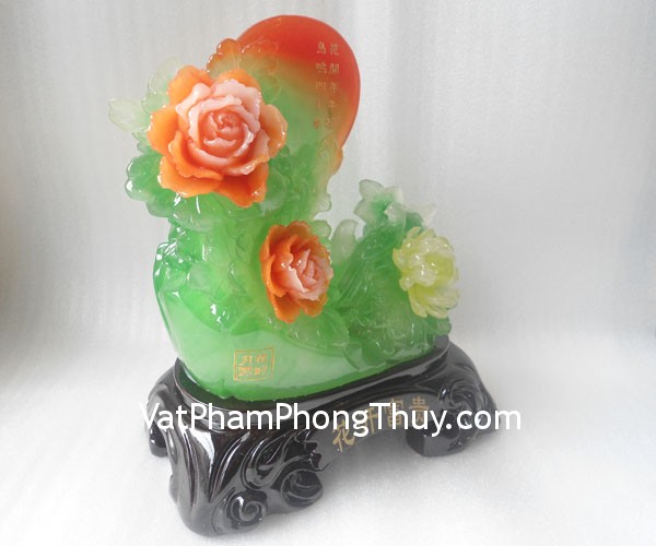 + Chất liệu và hoàn thiện: Hoa mẫu đơn bột đá màu (tại Việt Nam).