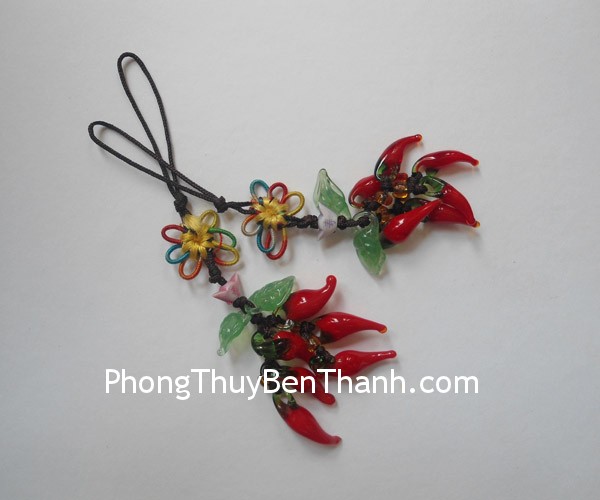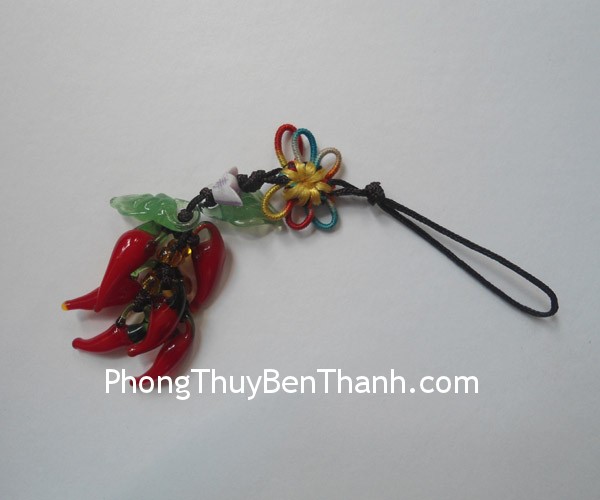 + Chất liệu và hoàn thiện: Móc điện thoại ớt bột đá màu (tại Việt Nam).