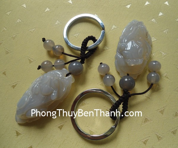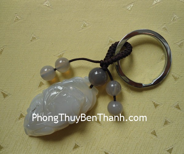 + Chất liệu và hoàn thiện: Móc khóa Tỳ hưu trên lá đá mã não khói (tại Việt Nam).