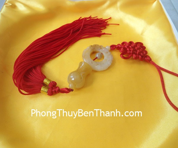 + Chất liệu và hoàn thiện: Ngọc bội hồ lô bảo bình đá ngọc Hoàng Long (tại Việt Nam). + Khối lượng: 32g + Ý nghĩa: hóa giải hung khí, mang lại bình an. + Cách sử dụng: ngọc bội treo xe, treo trong phòng khách, phòng làm việc.