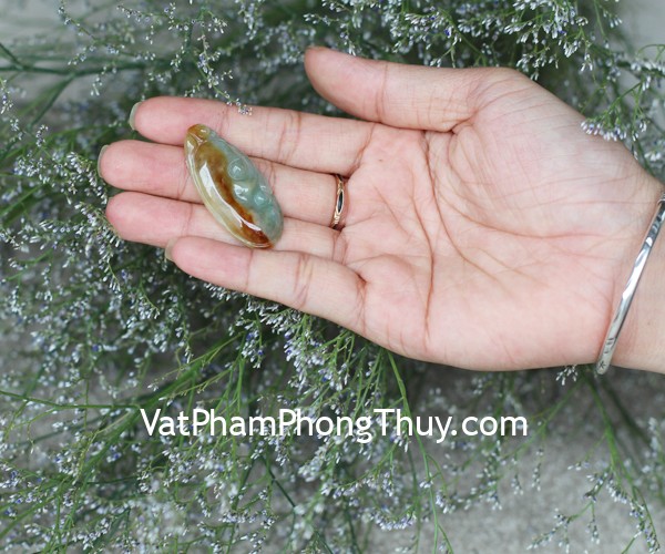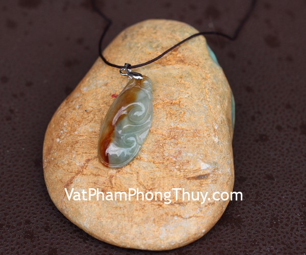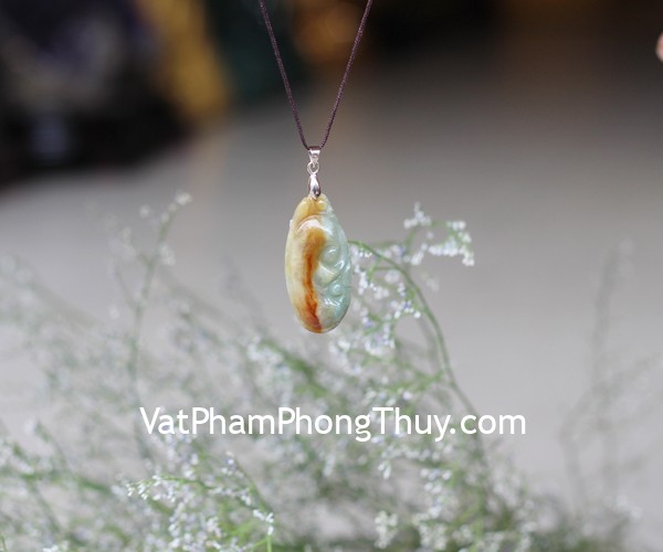+ Chất liệu và hoàn thiện: Ngọc bội may mắn phỉ thúy vân xanh huyết vàng (tại Việt Nam).