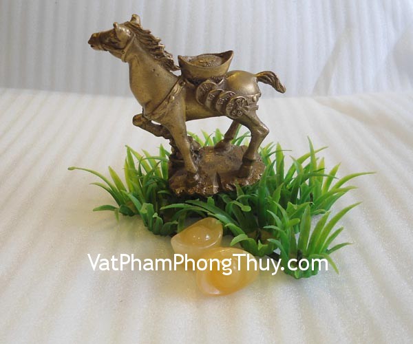 + Chất liệu và hoàn thiện: Tượng ngựa cõng đỉnh vàng bằng đồng nguyên (tại Việt Nam).