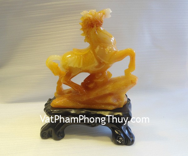 + Chất liệu và hoàn thiện: Tượng ngựa bột đá màu cam (tại Việt Nam).