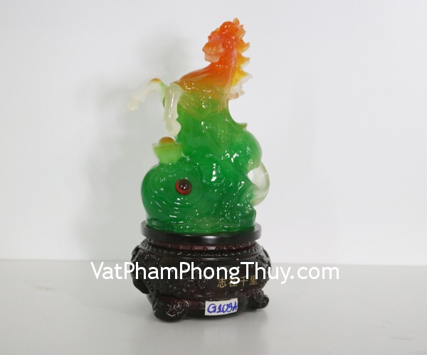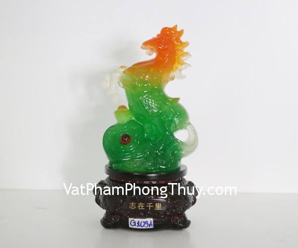 + Chất liệu và hoàn thiện: Tượng ngựa xanh trên gậy như ý, đế gỗ tròn, bột đá màu cao cấp (tại Việt Nam)