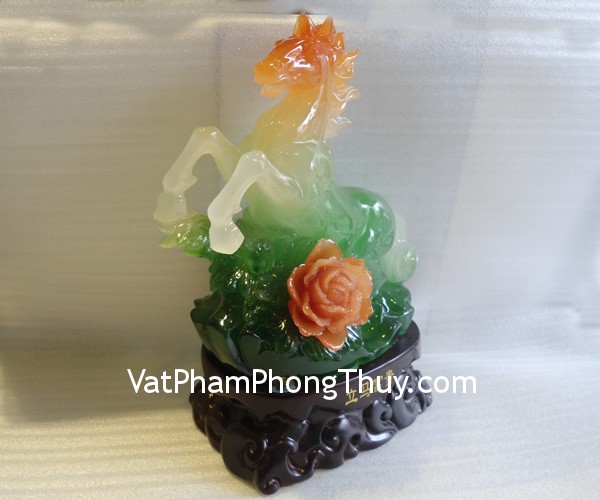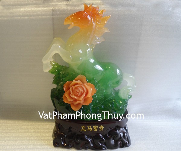 + Chất liệu và hoàn thiện: Tượng ngựa đứng bên hoa mẫu đơn bột đá màu (tại Việt Nam).